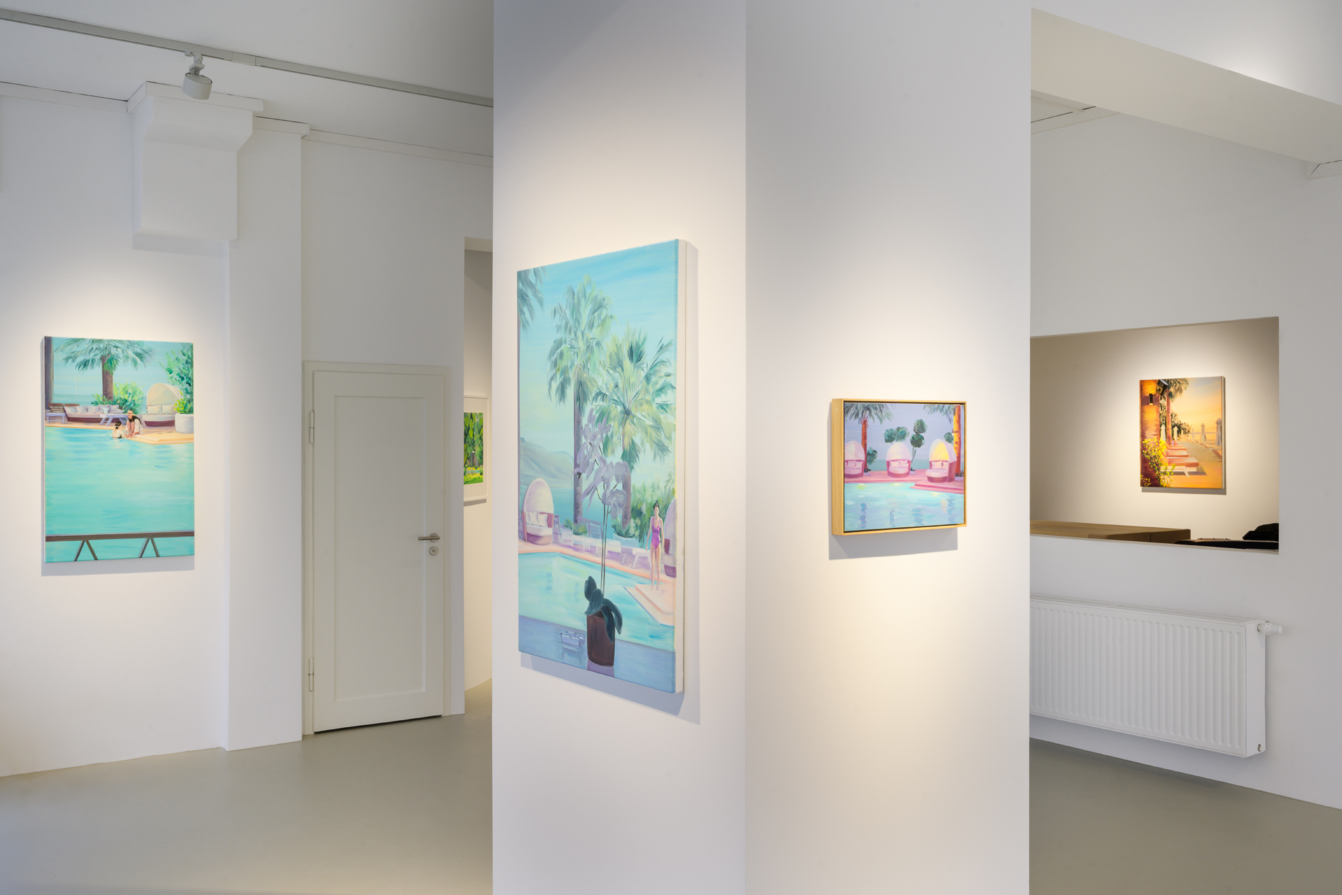 By portraying mostly lonely female protagonists whom she identifies with, in wide, hypaethral spaces, Belean deals with themes such as loneliness, melancholy, or simply the experiencing of life, alongside other moods that are often not easy to define.