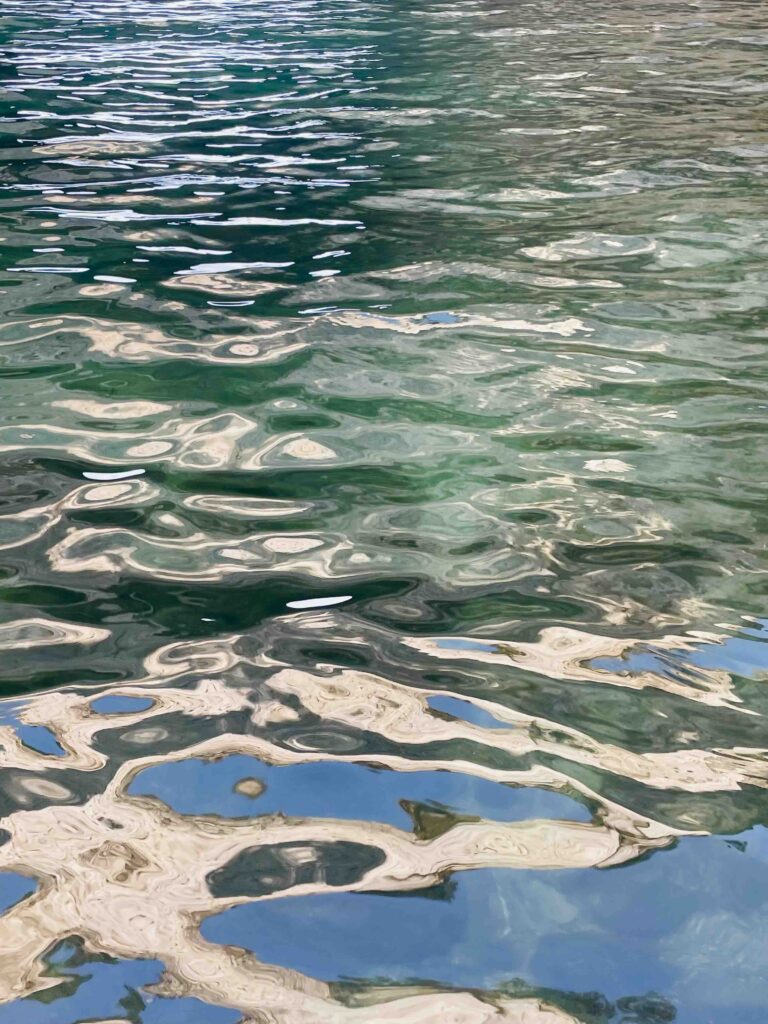 Die Themen, die mich in den letzten Jahren stark beschäftigen – besonders das Wasser – wollte ich auf einem anderen Material erproben. Acrylglas eröffnet dabei eine neue räumliche Dimension. Es bringt die Arbeiten stärker in den Raum. Bereits auf meinen Leinwänden habe ich oft bewusst Raum gelassen – einen offenen Bereich, der eine Art Korrespondenz mit den Betrachtenden ermöglicht.