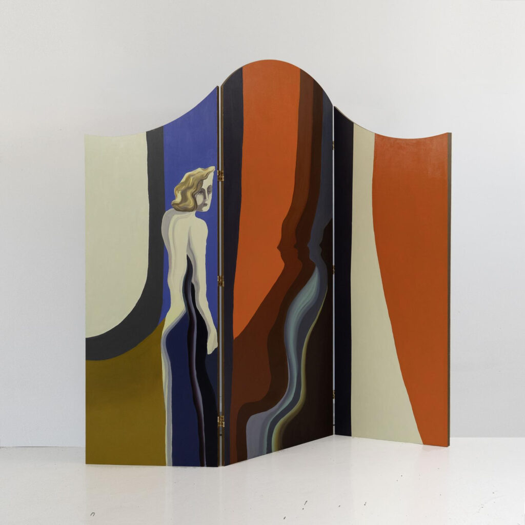 Kozak’s painting touches on the surrealist tradition, as shaped by Max Ernst, for one: composing fantasy images in which the familiar tips over into the strange and emotional worlds take on a mystical form. Kozak’s own individual painting style has a similar collage effect. It consistently oscillates between figurativeness and formal abstraction, but not in a hazy way; rather, it is permeated by an intuitive approach that allows us to sense more between the impasto layers of paint than what is visible to the naked eye. As a result, her paintings appear like painted interiors of intermediate states: between twilight and darkness, between heaven and hell, between departure and surrender. (…)