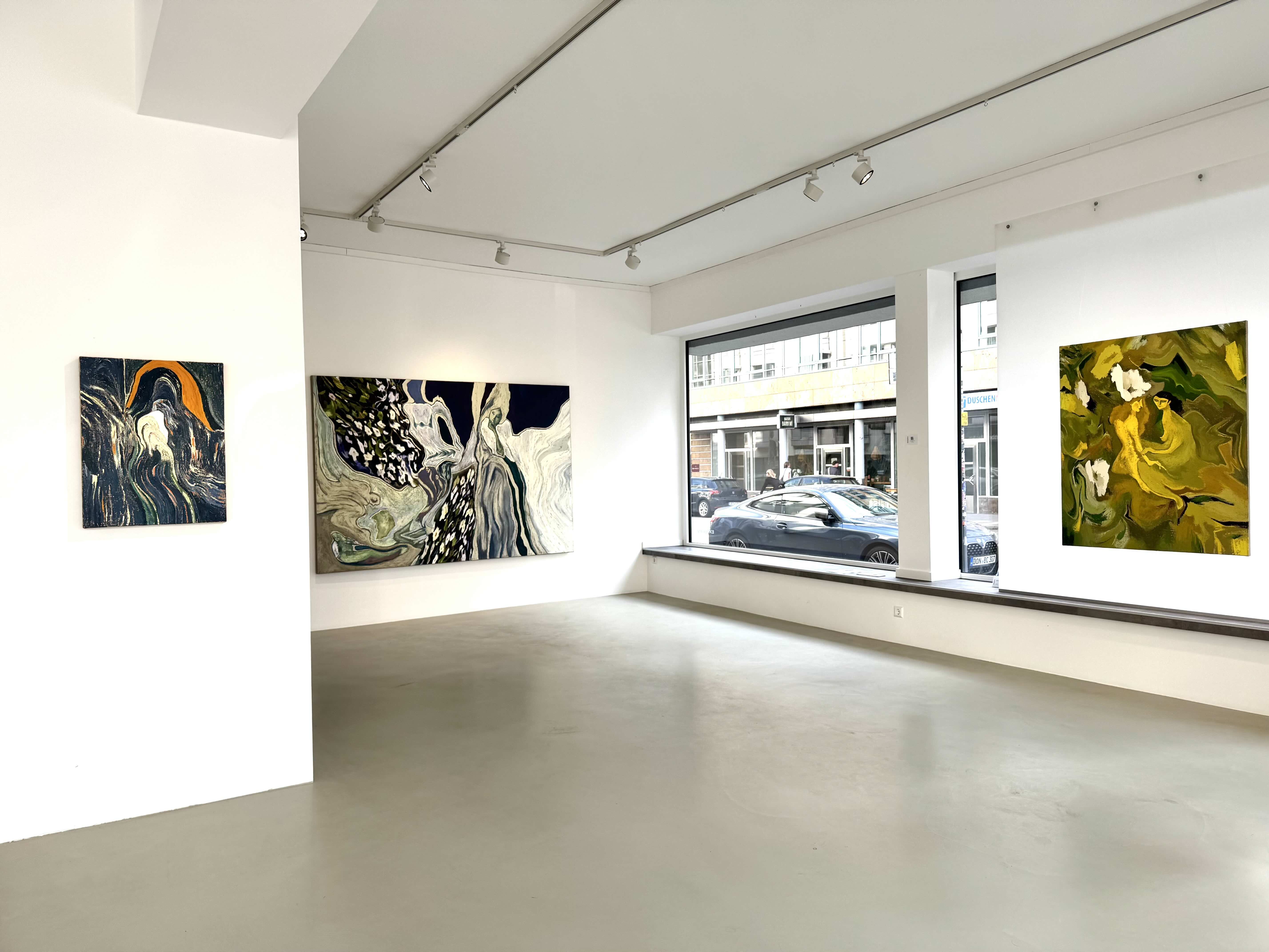 In contrast to the title of the exhibition, the images by Maria Kozak on display are anything but cheerful mood pieces with a more or less muted color palette. They are pictorial explorations of transition—reflections of emotional states. And that is precisely why they touch us so deeply: because they do not seek the human in the unambiguous, but in contradiction, where light and shadow exist simultaneously.